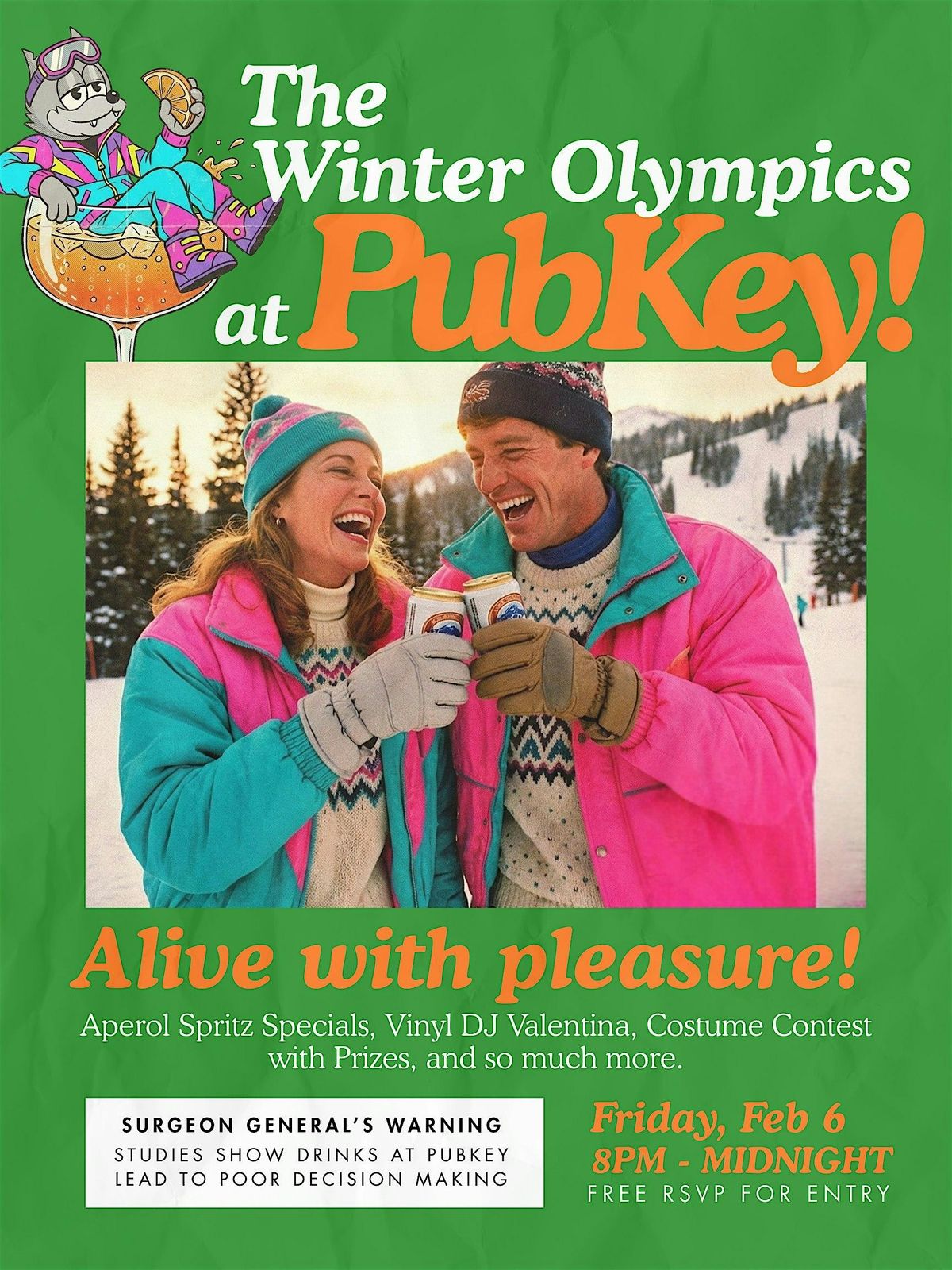 Come cozy, come flashy, come ready to cheer, sip, dance, and get a little weird. Let’s celebrate the Olympics the PubKey way.