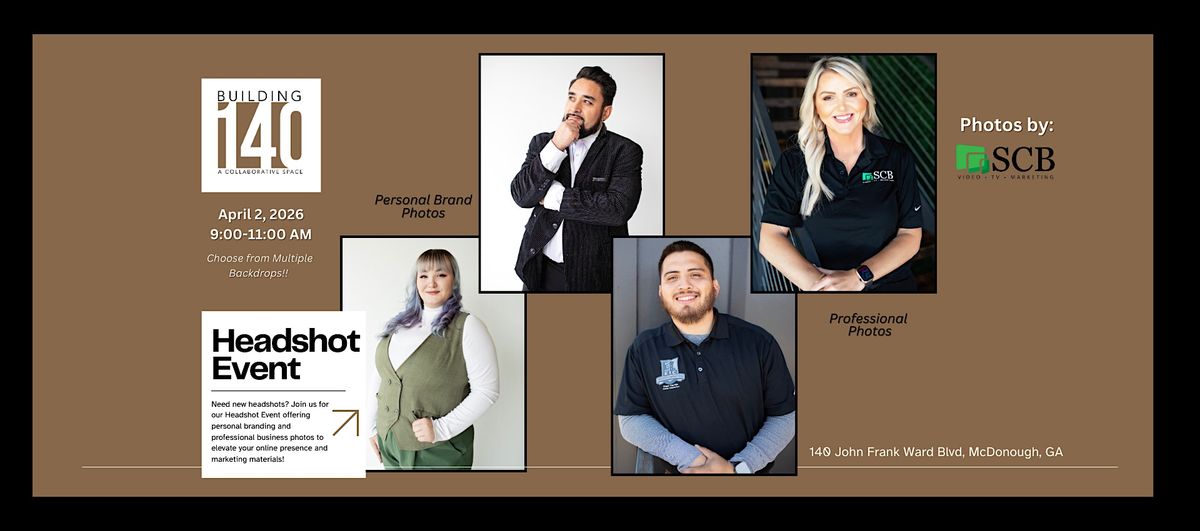 Building 140 is hosting a Drop-In Headshot Event for just $99 per session now offering 2 styles of backdrops. Multiple Background Options for each option. Professional photographer provided by SCB Video TV Marketing