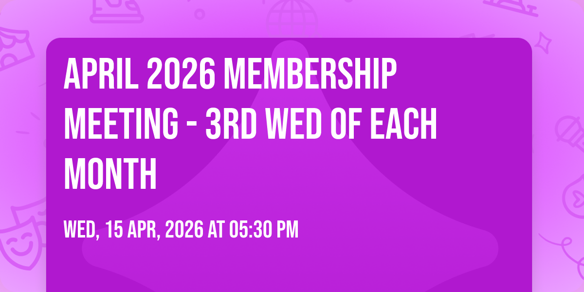 Board meets at 5:30pm.General Meeting starts 6pm.