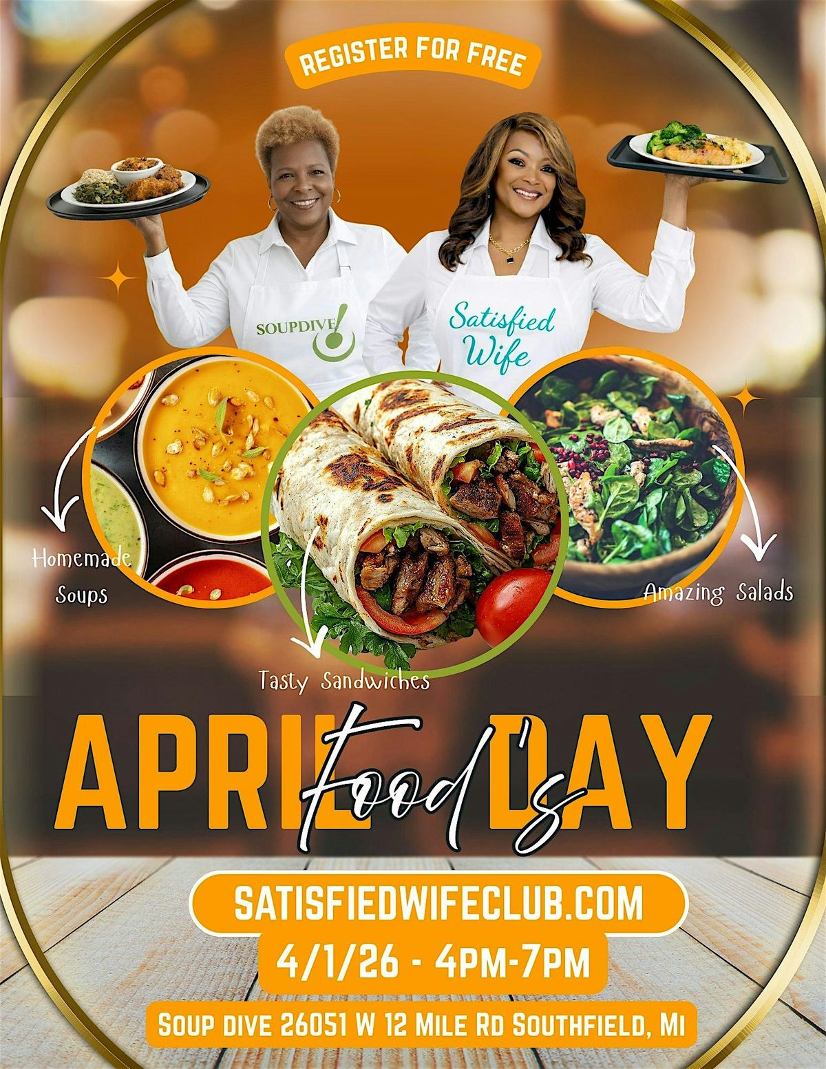 Join us on April 1st, 2026 from 4:00 PM – 7:00 PM for a flavorful and fun-filled evening at Soup Dive, a proudly woman-owned business right here in the Metro Detroit area.