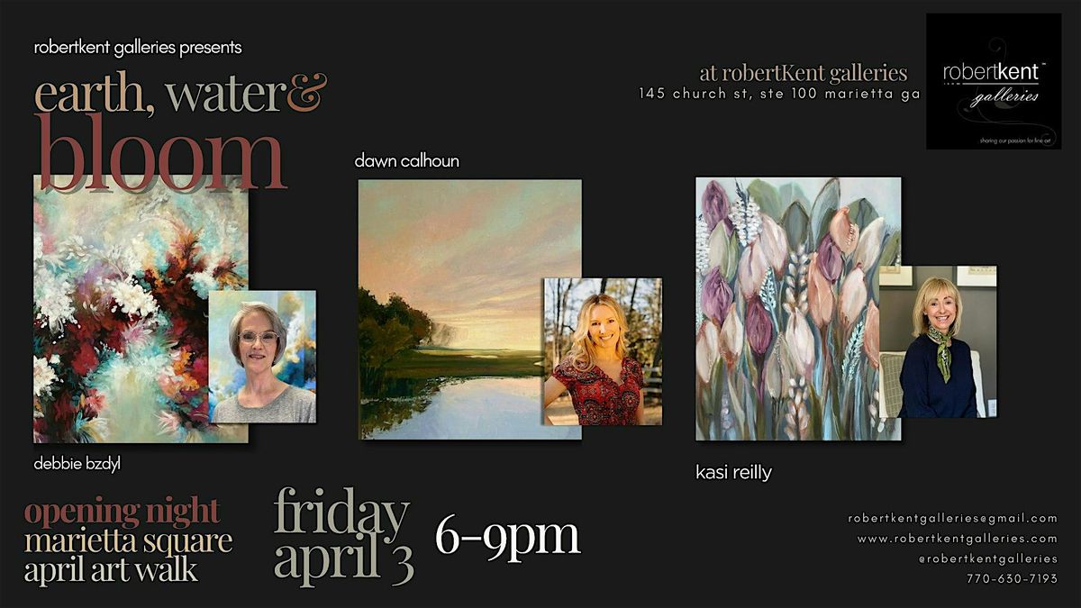 Join us for April ArtWalk at RobertKent Galleries as we present Earth, Water & Bloom, a spring exhibition featuring new works by Debbie Bzdyl, Dawn Calhoun, and Kasi Reilly.