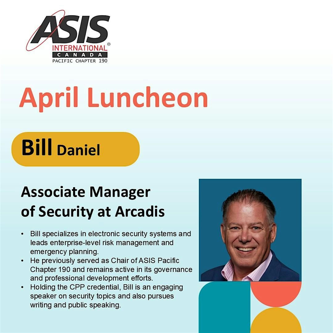 Join us for an engaging and practical ASIS Canadian Pacific Chapter 190 luncheon, bringing together security professionals from across British Columbia for an afternoon of learning, networking, and real-world insights.