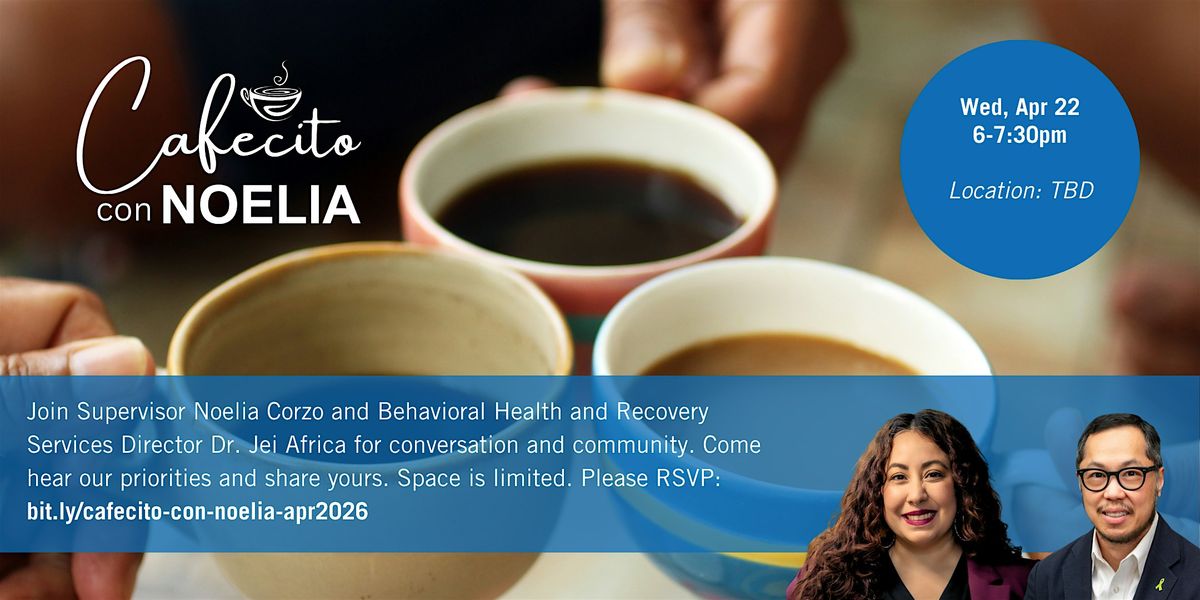 Join Supervisor Noelia Corzo and BHRS Director Dr. Jei Africa for small bites, conversation, and community. Come hear our priorities and share yours. Space is limited. Please RSVP.