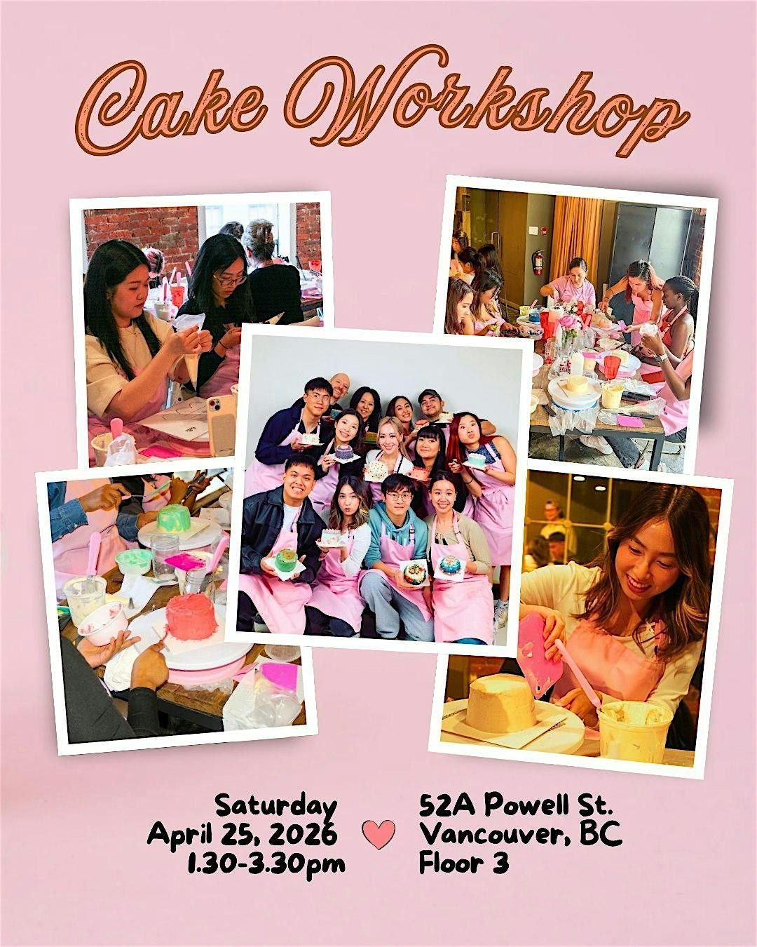 - All materials and tools provided (apron and cake turntable included)