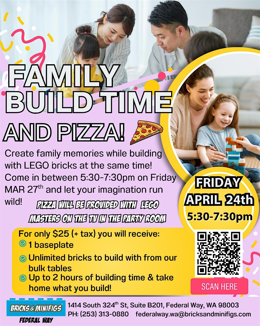 BONUS!!- PIZZA, COOKIES, & JUICE WILL PROVIDED. WITH LEGO MASTERS ON THE TV WHILE YOU BUILD