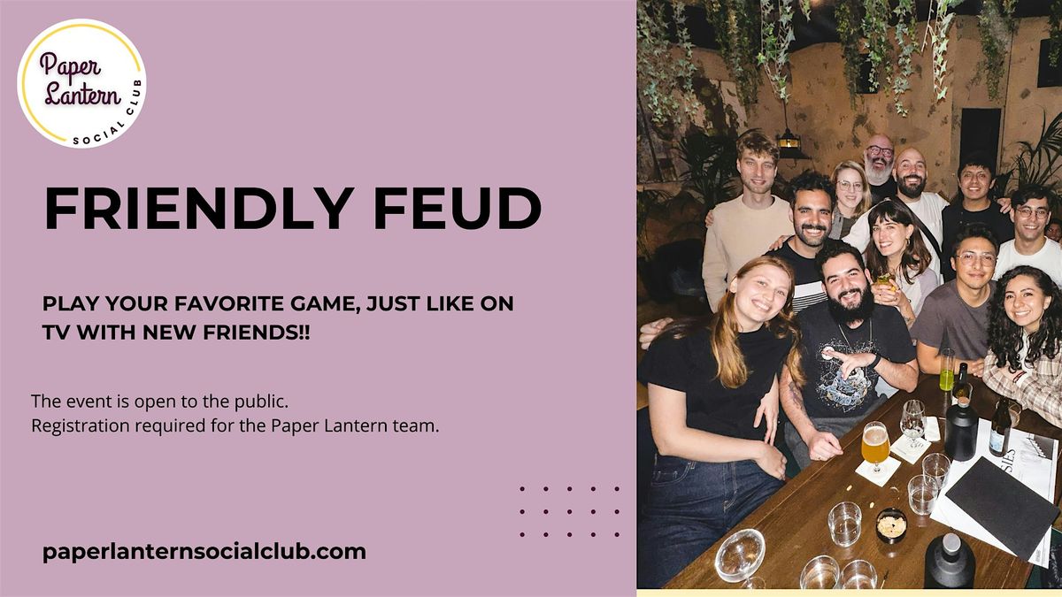 The Friendly Feud event is open to the public, registration is required if you want to participate on the Paper Lantern Team. Registration is free for for members (use your discount code at checkout), and $15 for guests.