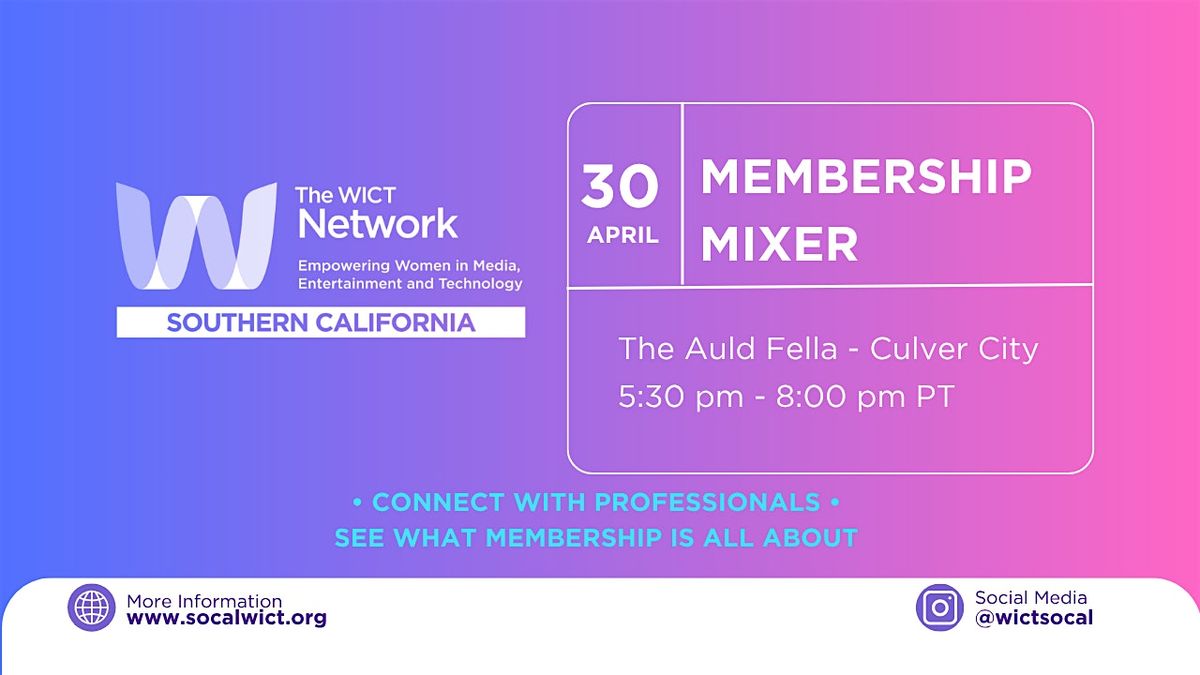 Join us for a relaxed evening of networking with professionals across media, entertainment, and technology. Meet current members, welcome new faces, and connect with The WICT Network: Southern California. Learn more about membership benefits: https://www.socalwict.org/about-membership. Food and beverages will be available for purchase.