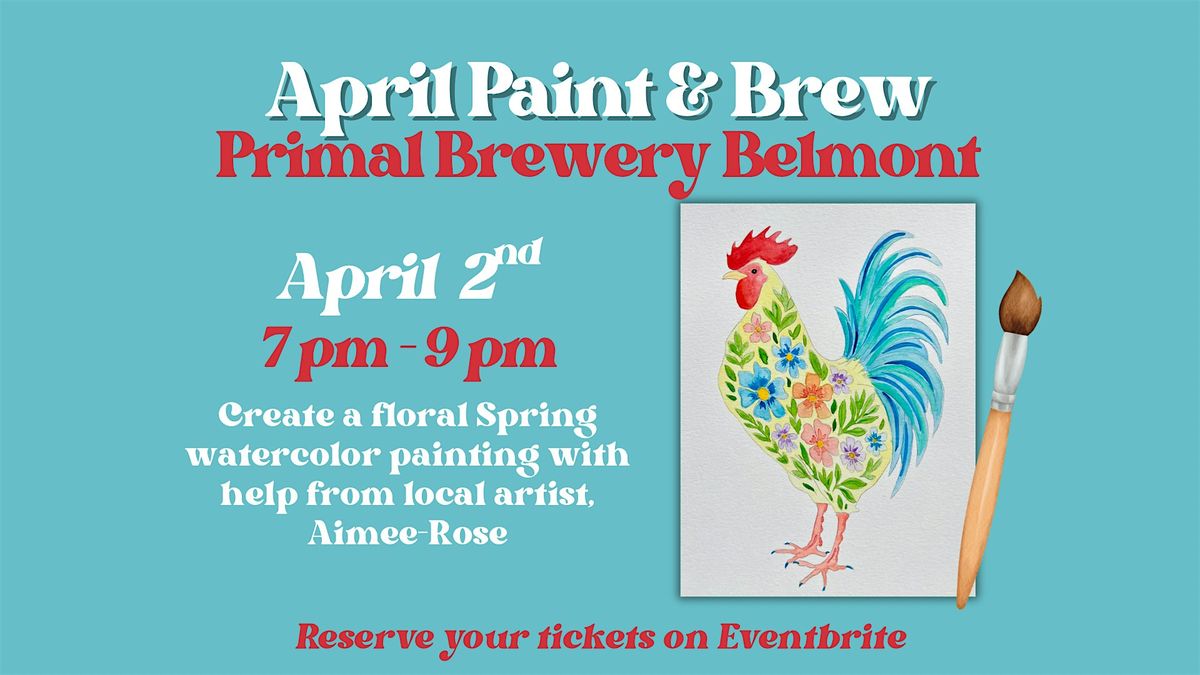 Join local artist Aimee-Rose of Art by Aimee-Rose for a fun and relaxing Paint & Brew night at Primal Brewery in Belmont! In this guided class, youโll create a charming spring floral rooster watercolor painting perfect for celebrating the season.
