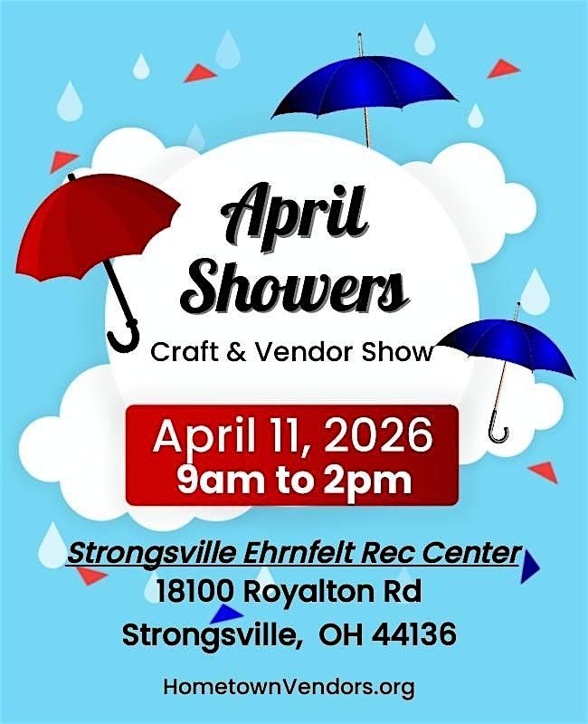 Join us for our April Showers Craft & Vendor Show at Strongsville Ehrnfelt Recreation Center From 9am to 2pm. we have 60 plus vendors ready to fill your arms with their Spring products.
