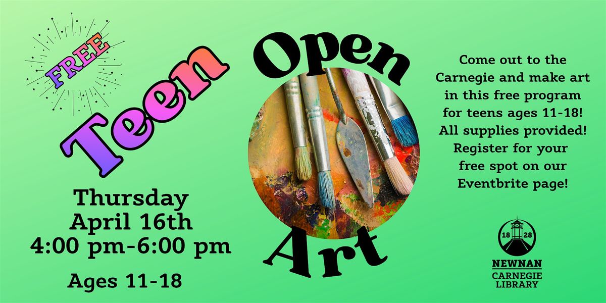 Come out to the Carnegie and make art in this free program for teens ages 11-18!All supplies provided!