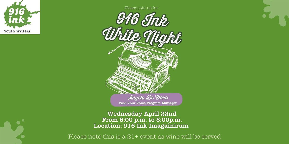 Weโll kick things off with a short introduction of 916 Ink and then an activity that helps you spark your creativity. After that you will have dedicated time to write and then share in a welcoming, supportive space.