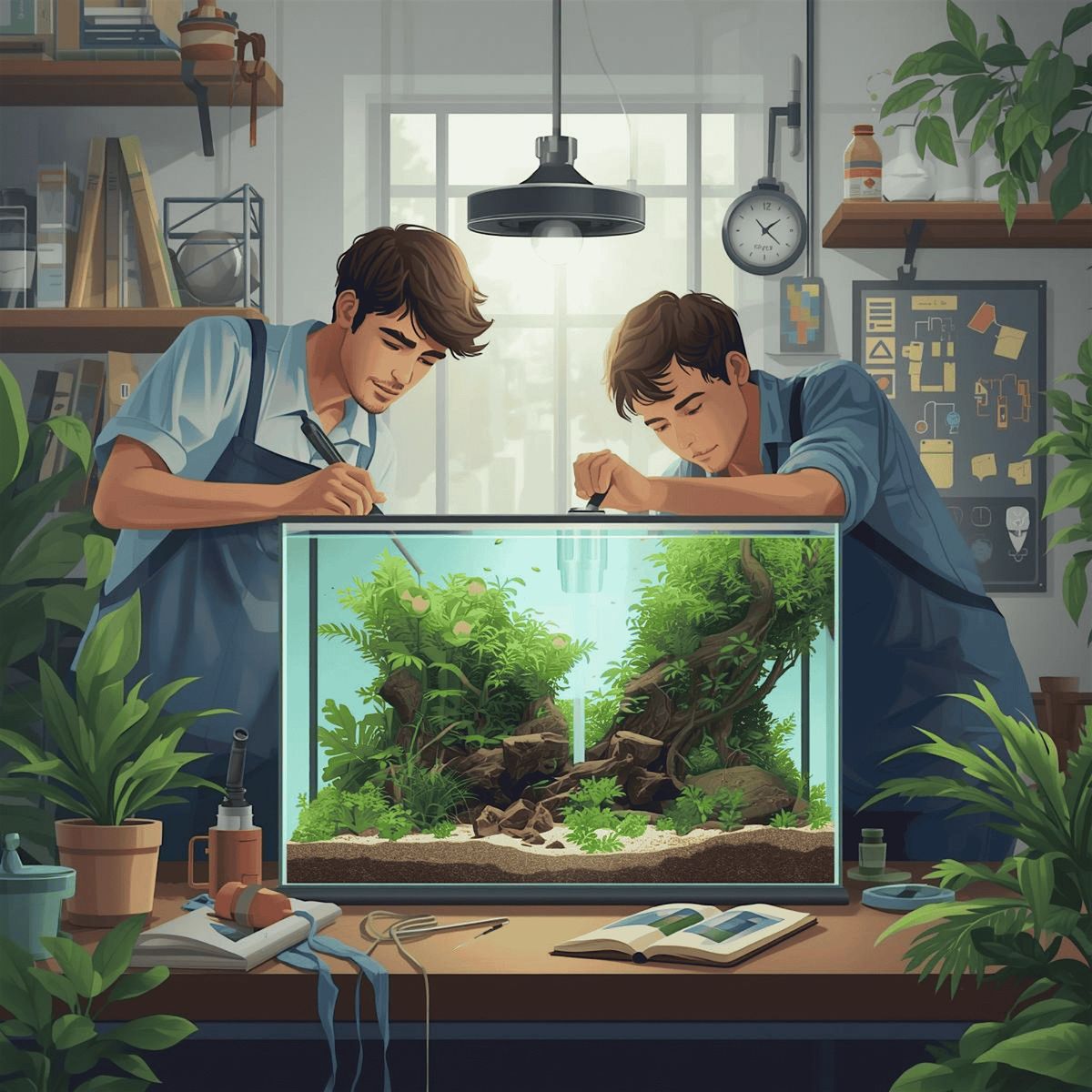 Des paysages miniatures façonnés sous l’eau, mêlant pierres, bois et plantes aquatiques, appelés à évoluer au fil des jours. Des créations vivantes qui grandissent, se transforment pour devenir le décor immersif de l'afterwork ludo.
