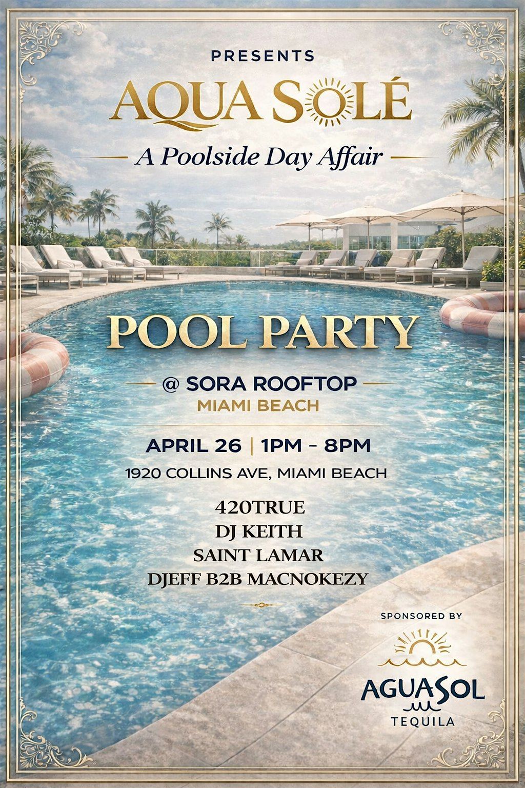 Get ready to soak up the sun, splash around, and chill in style at this awesome in-person event. Whether you're into relaxing by the water or catching some good vibes with friends, AQUASOLE has got you covered. Don't miss out on great music, cool drinks, and a vibrant atmosphere all day long!
