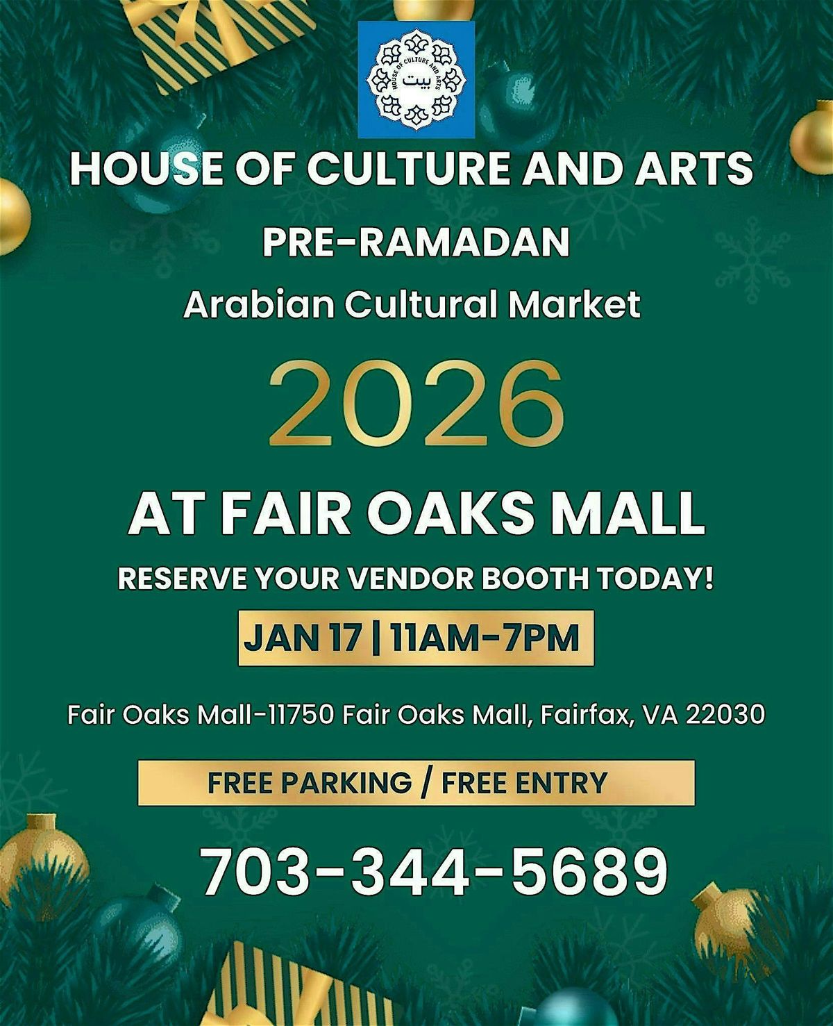 The House of Culture and Arts invites you to our spectacular New Year 2026 Cultural Market at Fair Oaks Mall!
