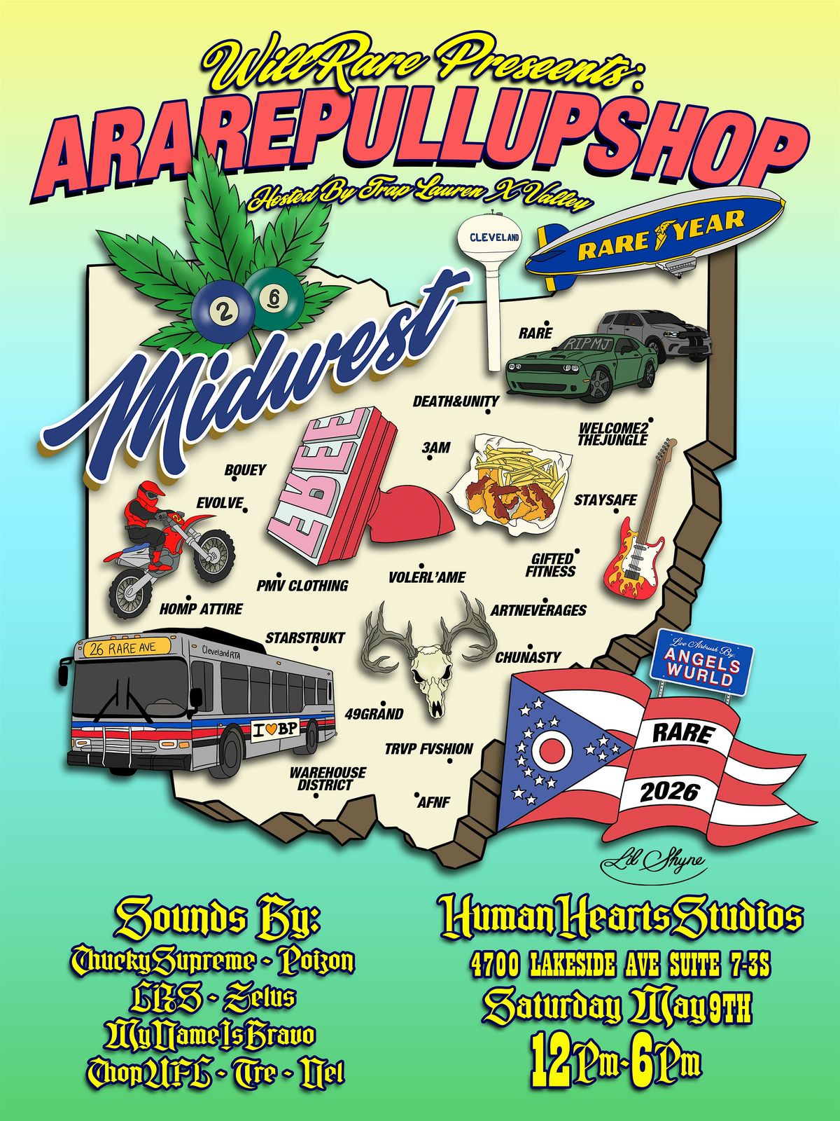 clothing, art, music, food & refreshment, special guest, live tattooing & airbrush