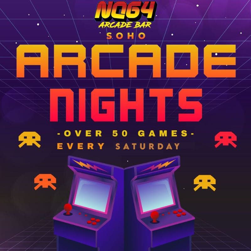 Arcade Night at NQ64 every Saturday ⭐️Grab your ticket now for our Arcade Nights at NQ64 Soho! Each ticket includes 5 tokens for games on arrival, and student drink prices all night long from £3.50!🍹Over 50 arcade games to choose from in this underground Arcade bar 👀If you're a group or looking for a private booking - send us an email and we can plan the perfect night out for you! [email protected] open at 12pm and entry is permitted until 1 hour before doors close at 3am!📍 Address: 53 Berwick St, London W1F 8SP🚇 Nearest Tube: Tottenham Court Road / Oxford Circus / Piccadilly Circus📣 Entry: Please be aware that entry is at the discretion of the venue, no single entry. This ticket allows entrance from 6pm.🆔 Physical ID Required: Remember to bring your physical ID; unfortunately, we cannot accept photos or scans on your phone.🎫 Ticket Name: Make sure your ticket name matches your ID name for a smooth entry. MUST SHOW A VALID STUDENT ID ON ENTRYDisclaimer: