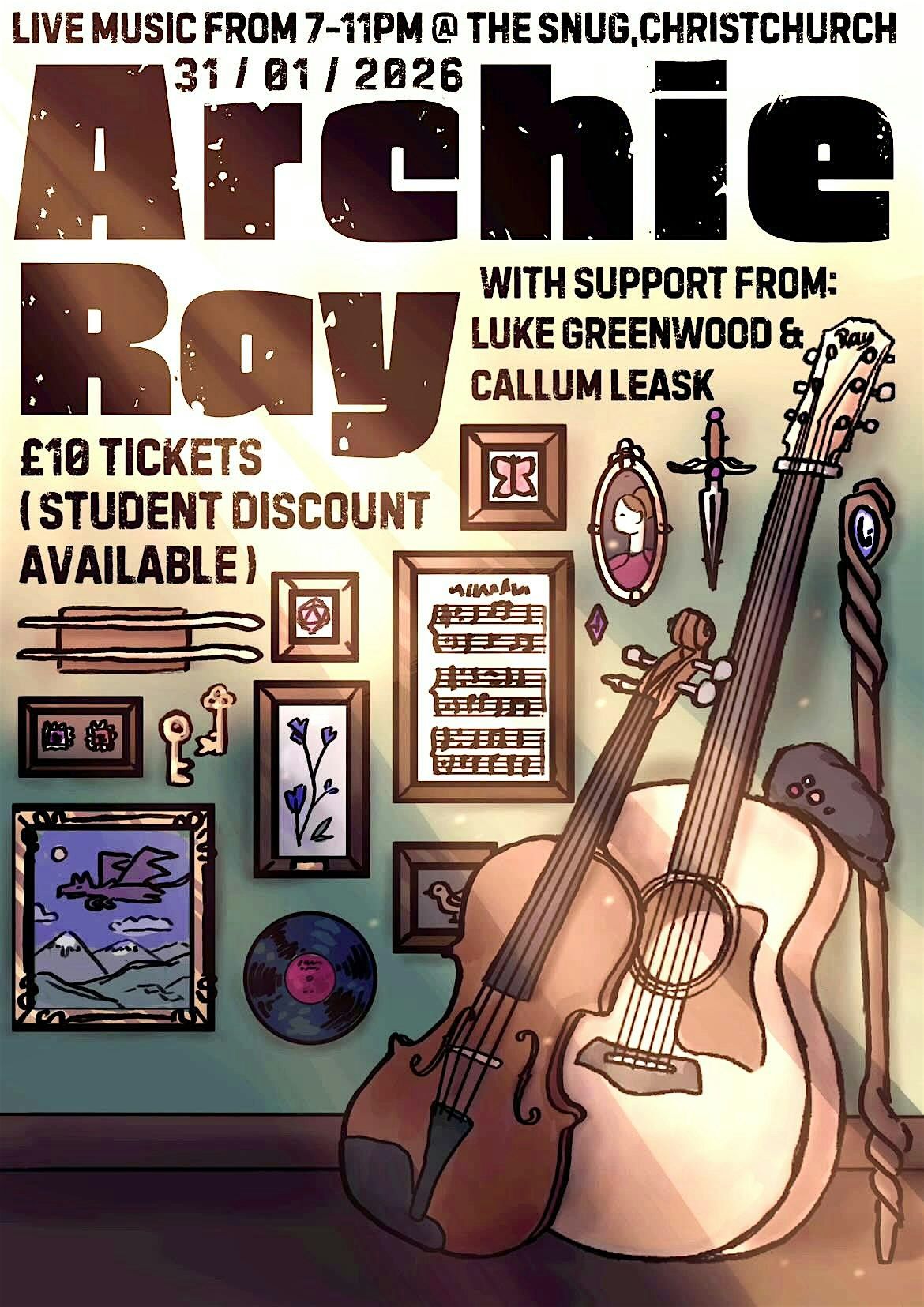 At a cozy, intimate venue in Christchurch, Archie Ray and his friends are here to give you a night of good tunes!
