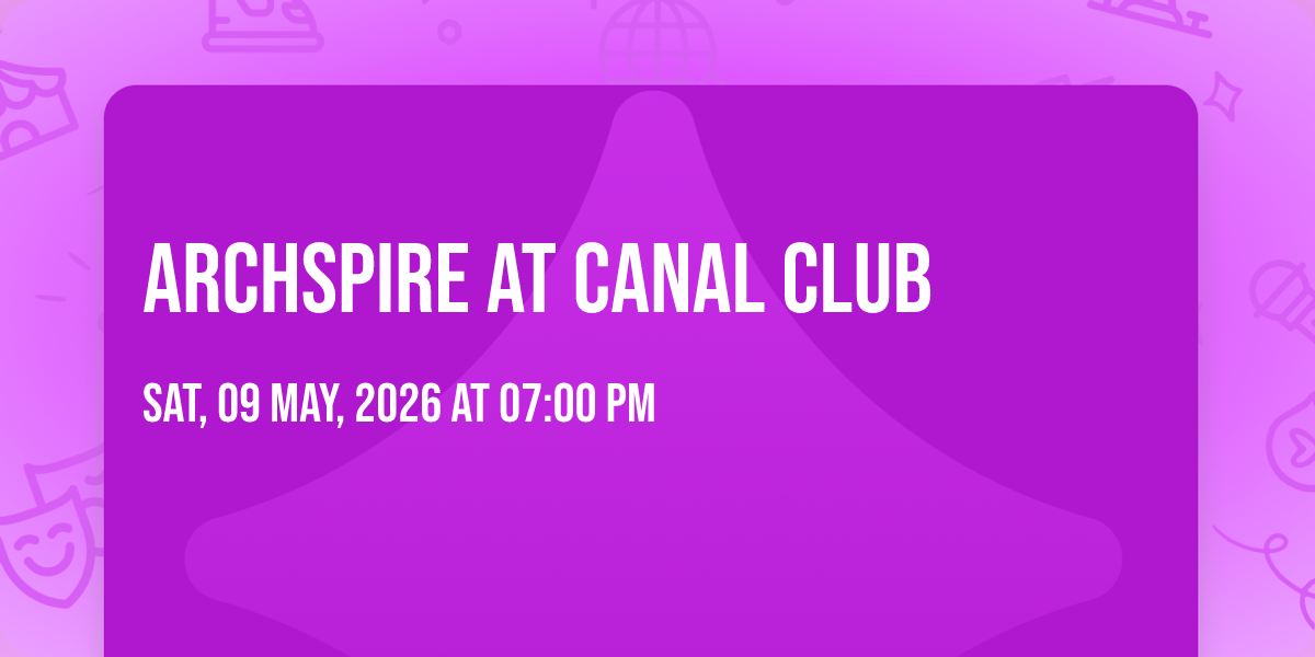 🎉 Welcome to Archspire at Canal Club, where dreams come alive and possibilities are endless! 🏛️ Join us at Canal Club in the heart of Richmond, VA for an event that defies expectations. 📅 On May 9th, 2026 at 07:00 PM, be part of something truly extraordinary as we bring together innovation, entertainment, and pure magic. ✨ Every aspect has been carefully designed to ensure an unforgettable experience for all our guests. Whether you're seeking adventure, inspiration, or simply a break from the ordinary, this event promises to deliver beyond your wildest dreams. 🎊 Prepare for a journey into the extraordinary!