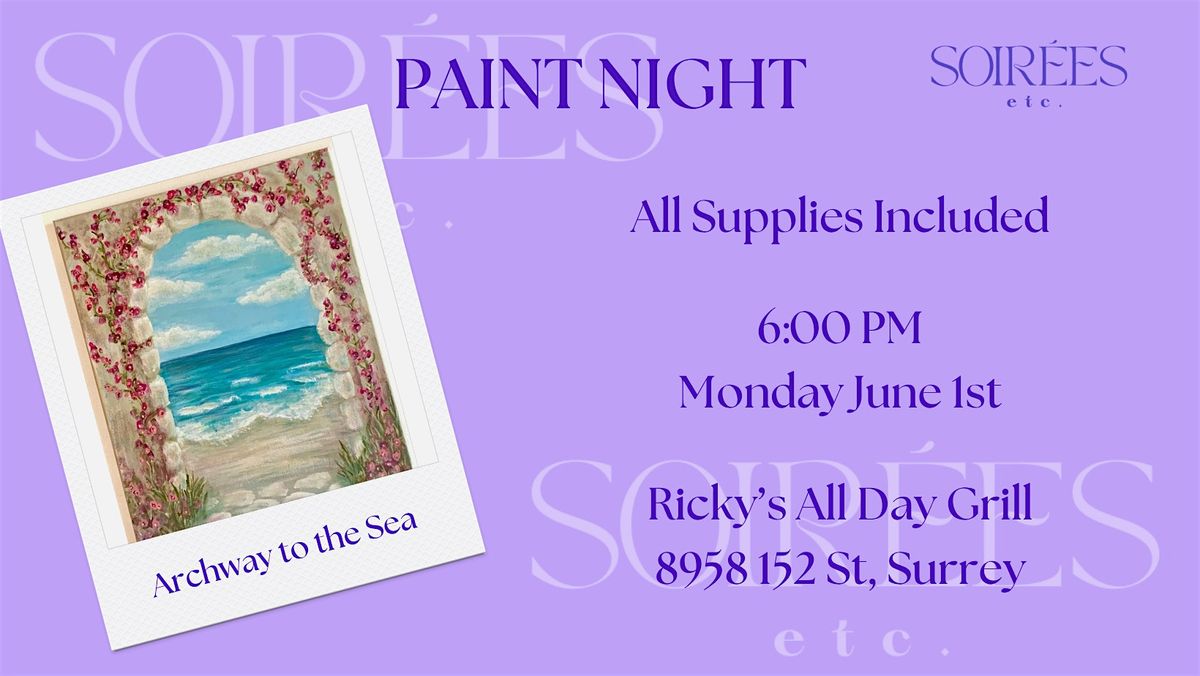 Step into a dreamy seaside setting with this Archway to the Sea–themed paint night, featuring soft ocean tones and scenic views ✨