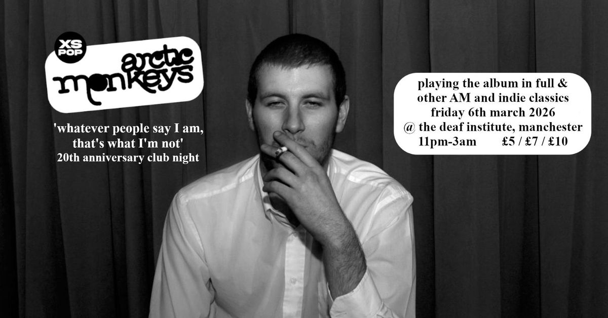 XS POP presents a special 20th-anniversary celebration of Arctic Monkeys’ legendary debut album, Whatever People Say I Am, That’s What I’m Not.Join us at The Deaf Institute on Friday, 6 March 2026 as we get on our dancing shoes for a club night dedicated to all things Monkeys, and the album that defined a generation. When the clock strikes midnight, we’ll be playing Whatever People Say I Am, That's What I'm Not front to back - every song, in order, just as it was meant to be heard.