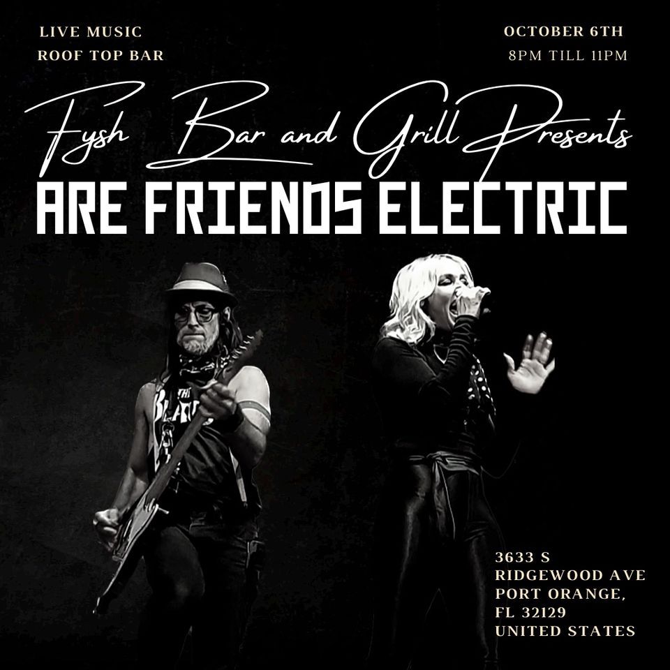 Join us for an electrifying evening atop our rooftop bar as we present ‘Are Friends Electric??⚡️ 8pm October 6th at Fysh Bar and Grill Port Orange. ??Enjoy our Rooftop Bar, Late Night Menu, and Delicious Drinks!