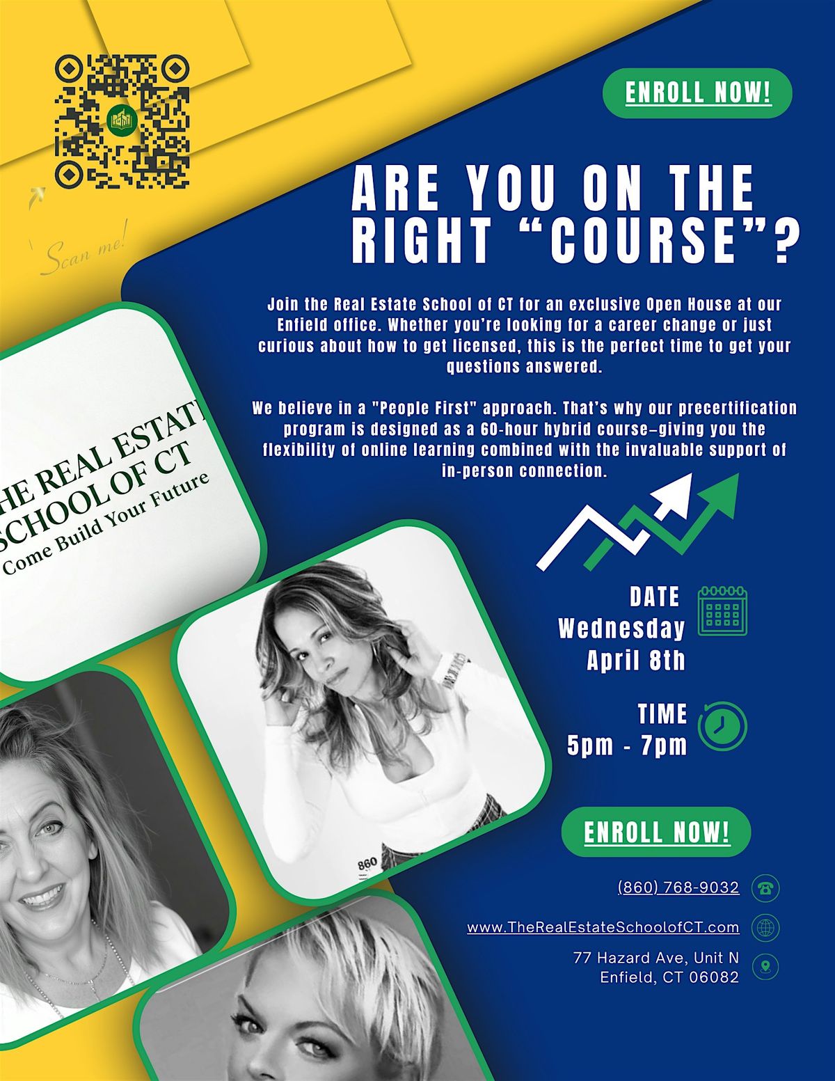 Join us in person for a fun and casual event where we'll help you figure out if you're truly on the right path. Whether you're stuck, unsure, or just curious, this is your chance to explore new directions, meet cool people, and get inspired. Don’t miss out on discovering what’s next for you. Join the Real Estate School of CT for an exclusive Open House at our Enfield office. Whether you’re looking for a career change or just curious about how to get licensed, this is the perfect time to get your questions answered.
