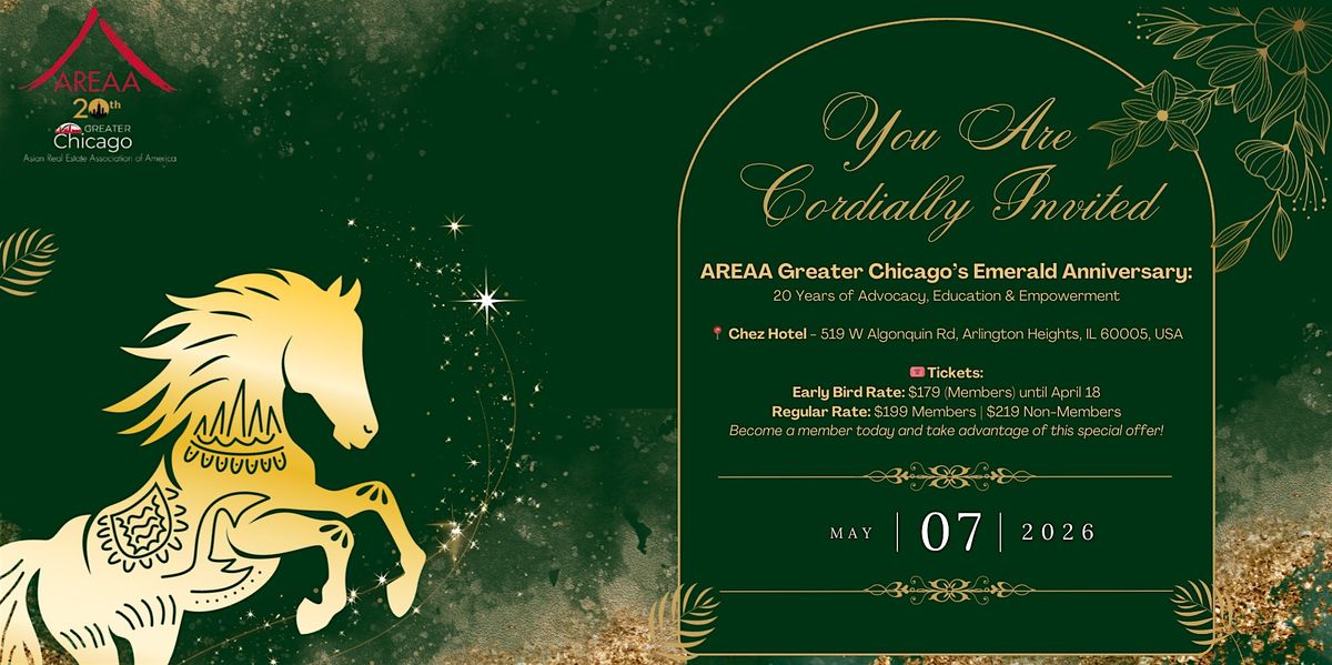Join us for an unforgettable evening as the Asian Real Estate Association of America (AREAA) Greater Chicago Chapter proudly celebrates its 20th Anniversary—a milestone marking two decades of impact, leadership, and community empowerment in real estate and beyond.