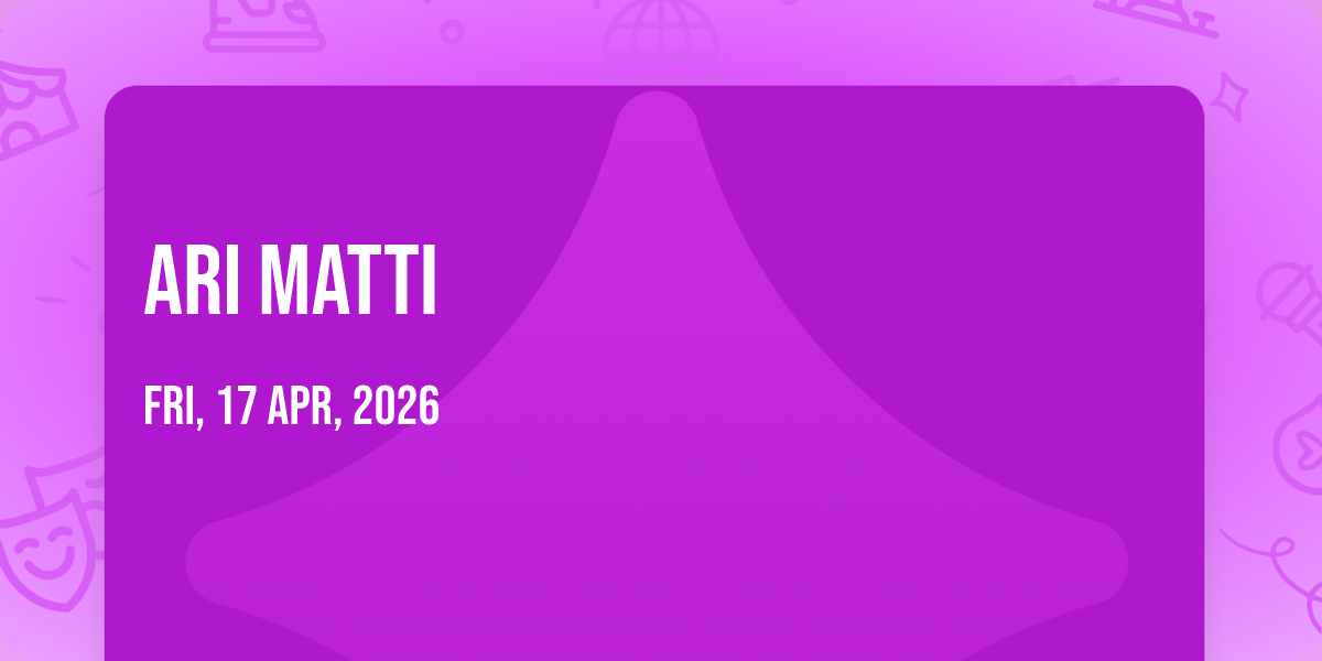📍 Location: 40.7648, -111.903🌟 Step into a world of wonder at Ari Matti, where extraordinary moments await! 🏛️ Located at Wiseguys Comedy Club - Salt Lake City in dynamic Salt Lake City, UT, this event will become the talk of the town. 📅 Join us on April 19th, 2026 at 03:30 AM for a celebration that defies the ordinary. ✨ This curated experience brings together the best of entertainment, culture, and community spirit. Every detail has been thoughtfully planned to ensure an unforgettable experience for all our guests. 🎯 Take advantage of this opportunity to be part of something special. 🎊 Early registration is recommended as space is limited!