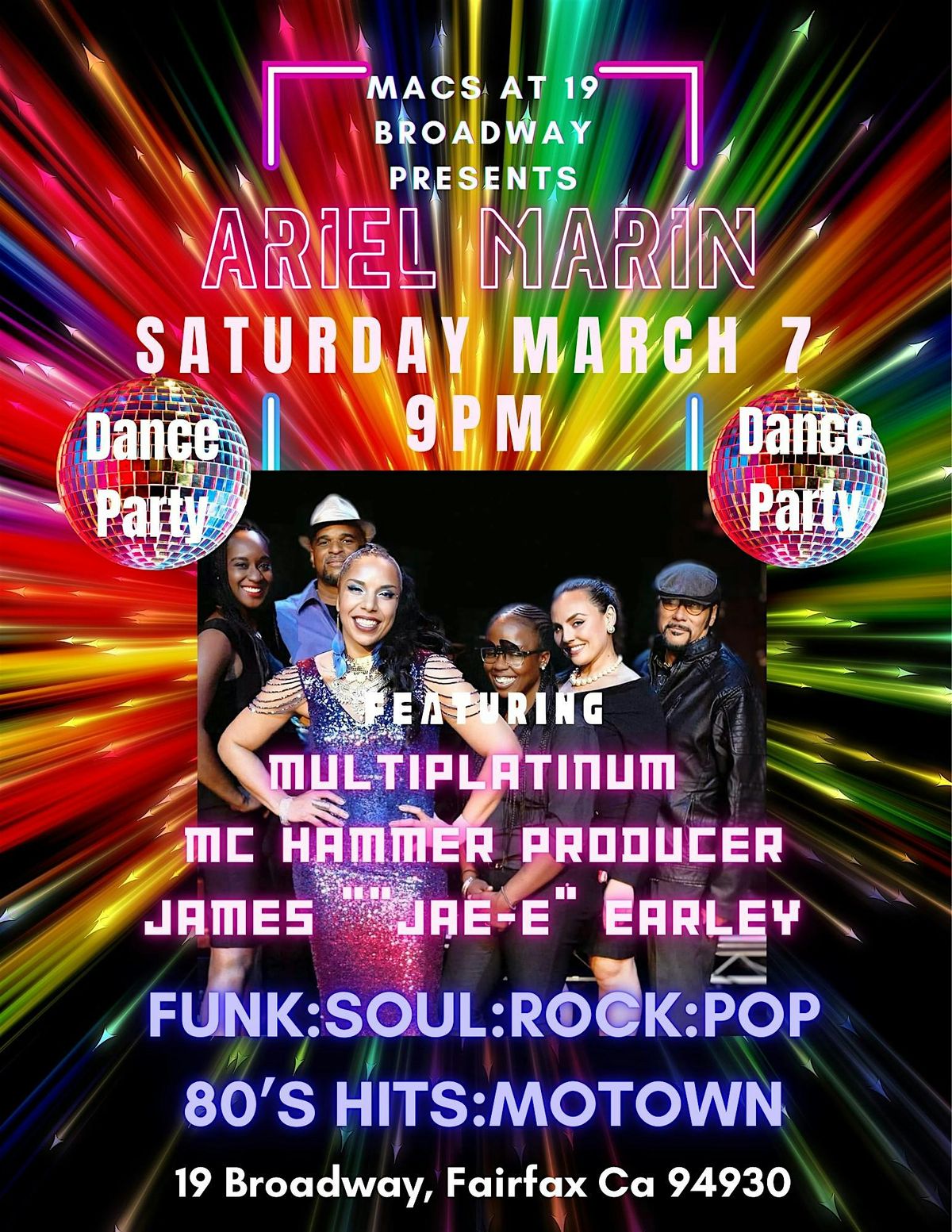 Mac’s at 19 Broadway presents Ariel Marin, bringing an explosive night of Funk, Soul, Rock, Pop, 80’s Hits, and Motown classics to the dance floor.