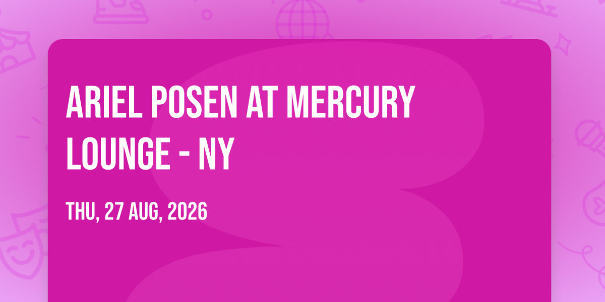 ✨ Enter a world of endless possibilities at Ariel Posen at Mercury Lounge - NY, where every moment tells a story! 🏛️ The stunning Mercury Lounge - NY in vibrant New York, NY transforms into a realm of wonder on August 27th, 2026 at 06:00 PM. 🌟 They have crafted an experience that goes beyond the ordinary, combining elements of surprise, delight, and pure entertainment. Every detail has been thoughtfully considered to ensure your journey with us is nothing short of extraordinary. 🎯 Join fellow adventure seekers and memory makers in this celebration of imagination and innovation. 🎊 Reserve your spot today and be part of something truly special!