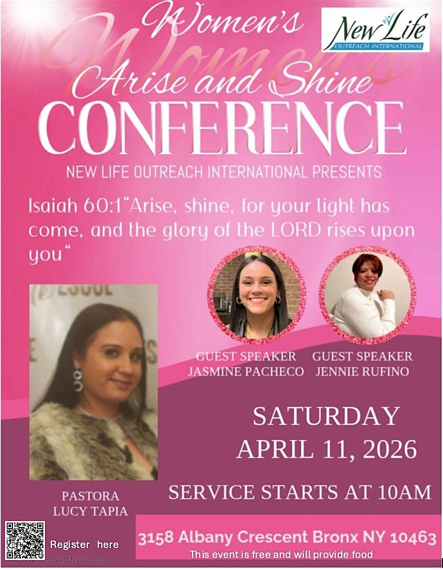 Join us for a powerful and uplifting Women’s Arise and Shine Conference. This event is all free. First 24 women will recieve a gift.