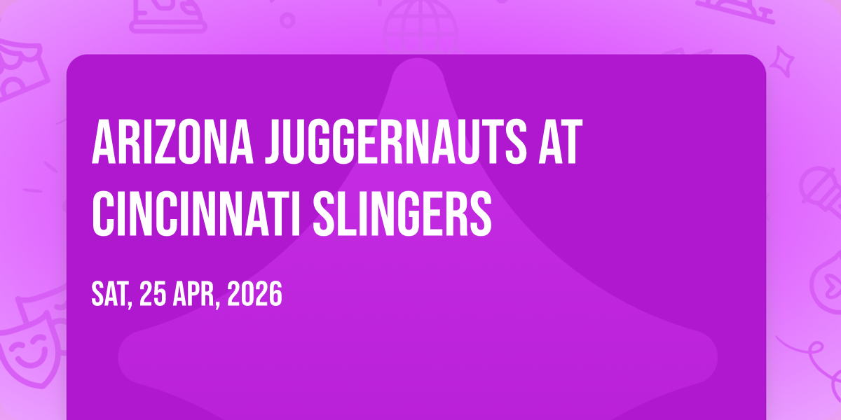 📍 Location: 39.098, -84.5045🎉 Prepare to be amazed at Arizona Juggernauts at Cincinnati Slingers, the most anticipated gathering of the season! 🌟 Set against the stunning backdrop of Heritage Bank Center in vibrant Cincinnati, OH, this event promises to redefine your expectations. 📅 Mark your calendars for April 25th, 2026 at 10:30 PM and get ready to immerse yourself in an atmosphere of wonder and excitement. ✨ From the moment you arrive, you'll be transported into a world where memories are made and stories come alive. They have crafted an experience that perfectly harmonizes entertainment, innovation, and community spirit. 🌈 Join us as we create moments that will be discussed for years!