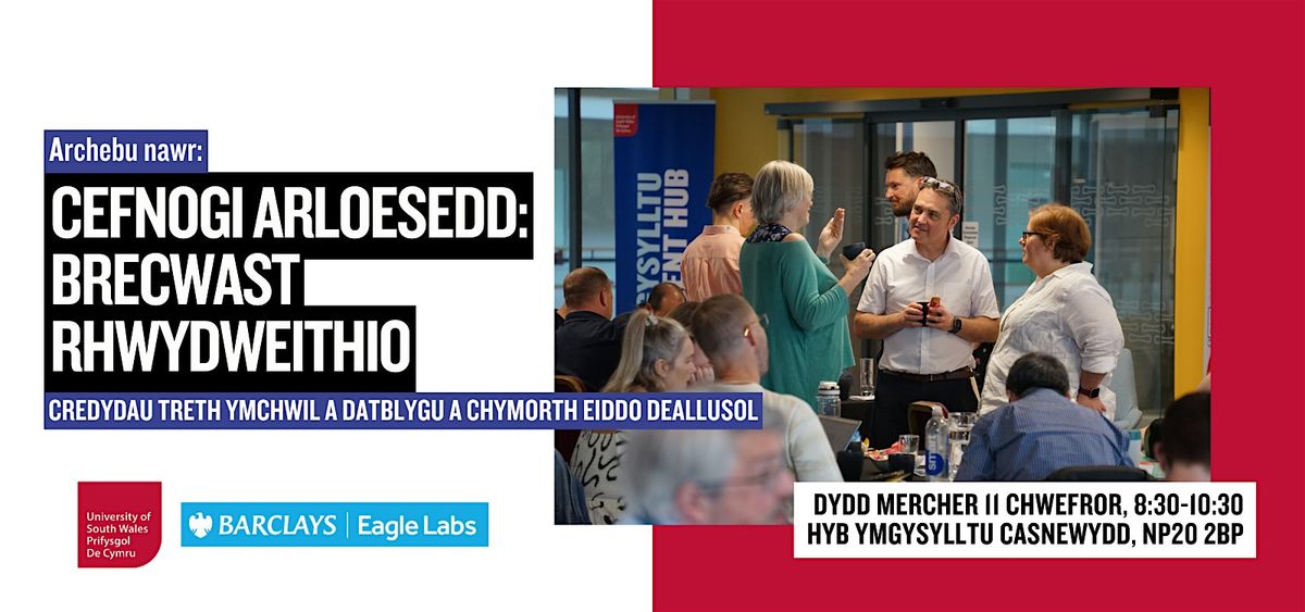 Byddwch yn clywed cyflwyniadau byr, ymarferol gan Catalyst R&D, Eagle Labs, a'r Swyddfa Eiddo Deallusol, sy'n cwmpasu popeth o gredydau treth Ymchwil a Datblygu, eiddo deallusol a mentrau cymorth ariannol. P'un ai ydych chi'n edrych i sbarduno arloesedd, tyfu eich busnes neu ddeall pa help sydd ar gael, byddwch chi'n gadael gyda mewnwelediadau clir a digon o ysbrydoliaeth.
