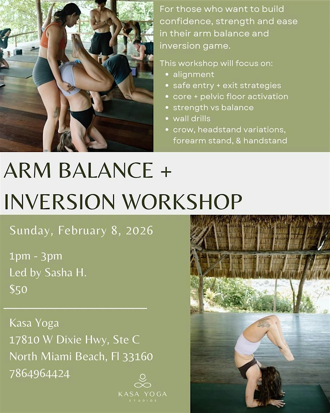 Sasha will guide you through intelligent warm-ups, targeted drills, and progressive techniques to help you better understand the mechanics behind arm balances and inversions. Emphasis will be placed on proper alignment, safe entry and exit strategies, and cultivating the balance between strength and stability.