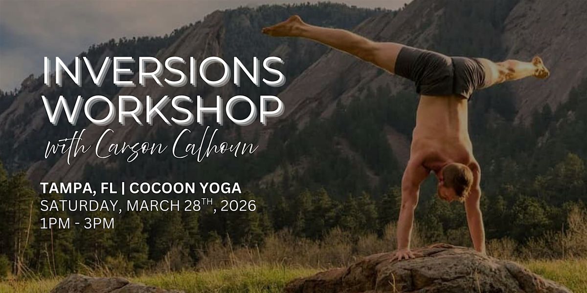 Join international yoga teacher Carson Calhoun for two hours of Arm Balances + Inversions learning at Cocoon Yoga in Tampa, FL.