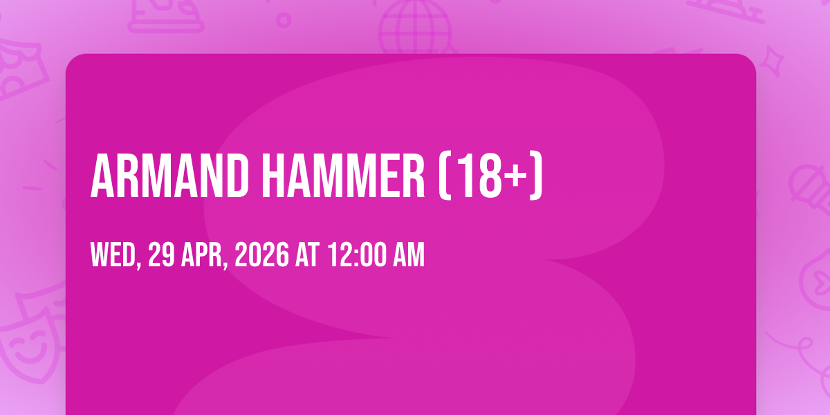 📍 Location: 36.1522, -86.7782✨ Enter a world of endless possibilities at Armand Hammer (18+), where every moment tells a story! 🏛️ The stunning Third Man Records - Blue Room in vibrant Nashville, TN transforms into a realm of wonder on April 29th, 2026 at 12:00 AM. 🌟 They have crafted an experience that goes beyond the ordinary, combining elements of surprise, delight, and pure entertainment. Every detail has been thoughtfully considered to ensure your journey with us is nothing short of extraordinary. 🎯 Join fellow adventure seekers and memory makers in this celebration of imagination and innovation. 🎊 Reserve your spot today and be part of something truly special!