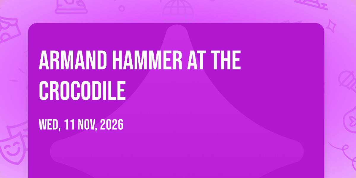 🌟 Be part of history at Armand Hammer at The Crocodile, an extraordinary gathering that will captivate your imagination! 🏛️ The prestigious The Crocodile in Seattle, WA sets the stage for an unforgettable experience on November 11th, 2026 at 08:00 PM. ✨ They are bringing together the finest elements of entertainment and innovation to create moments that will take your breath away. From the moment you arrive, you'll be immersed in an atmosphere of wonder and excitement. 🎯 This carefully planned event ensures every guest experiences something truly special. 🎊 Early booking is recommended for this must-attend event of the season!