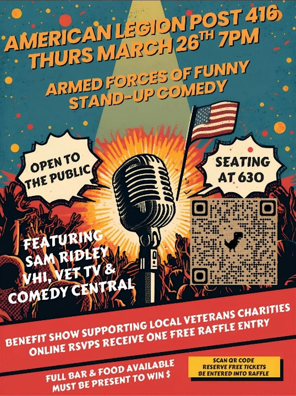 Get ready to laugh your combat boots off! All comics are US military veterans. This is a benefit show supporting local veterans charity, www.asapasap.org.