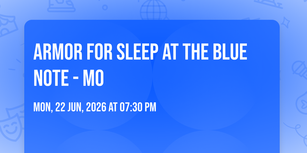 ✨ Discover the extraordinary at Armor For Sleep at The Blue Note - MO, where magic meets reality in ways you've never imagined! 🏛️ Set in The Blue Note - MO nestled in bustling Columbia, MO, this event promises to be a landmark occasion. 📅 Taking place on June 22nd, 2026 at 07:30 PM, it's going to create an atmosphere where every moment becomes a cherished memory. 🌟 Immerse yourself in an experience crafted with attention to every detail, designed to surprise and delight at every turn. They have worked tirelessly to ensure this event exceeds all expectations, bringing together elements of entertainment, innovation, and pure joy. 🎊 Don't miss your chance to be part of this remarkable journey!