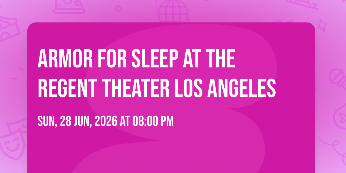 🌟 Be part of history at Armor For Sleep at The Regent Theater Los Angeles, an extraordinary gathering that will captivate your imagination! 🏛️ The prestigious The Regent Theater Los Angeles in Los Angeles, CA sets the stage for an unforgettable experience on June 28th, 2026 at 08:00 PM. ✨ They are bringing together the finest elements of entertainment and innovation to create moments that will take your breath away. From the moment you arrive, you'll be immersed in an atmosphere of wonder and excitement. 🎯 This carefully planned event ensures every guest experiences something truly special. 🎊 Early booking is recommended for this must-attend event of the season!