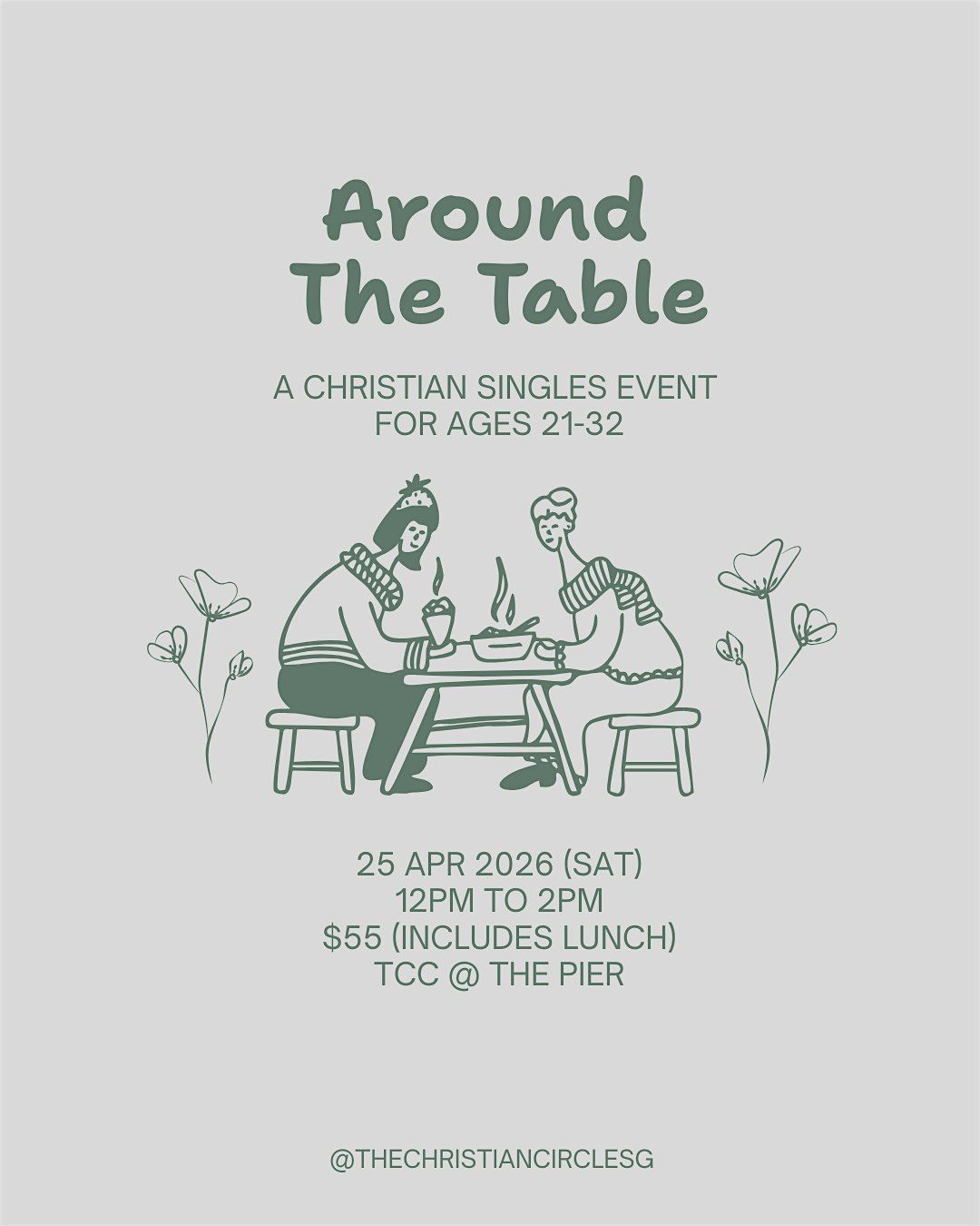 👉 We would require your mobile number to liaise on the event details. Please submit your food order here after purchasing your event ticket: https://tinyurl.com/aroundthetablechristian20s