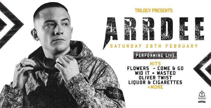 We continue to break the internet ArrDeeย Saturday 28 Feb ๐คฏ We ALL wanna party with ๐๐๐๐๐๐, now we can!ARRDEE joins us for another huge night at Trilogy! The legend will be performing, LIVE Flowers, Oliver Twist, Liquor & Cigarettes, Come & Go & his brand new hitโฆ YO YO YO!Open til 4am.Disclaimer: