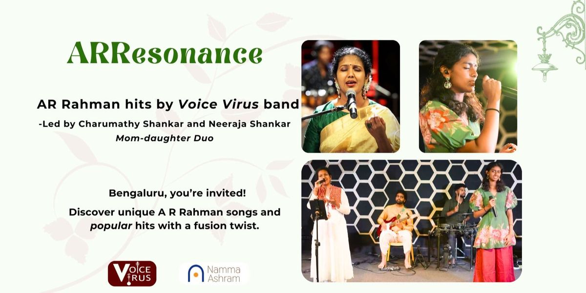 Bringing their 1st live concert at Namma Ashram, with A.R. Rahman's incredible songs with their fushion twist. From popular hits to unconventional compositions, performing in orchestras.