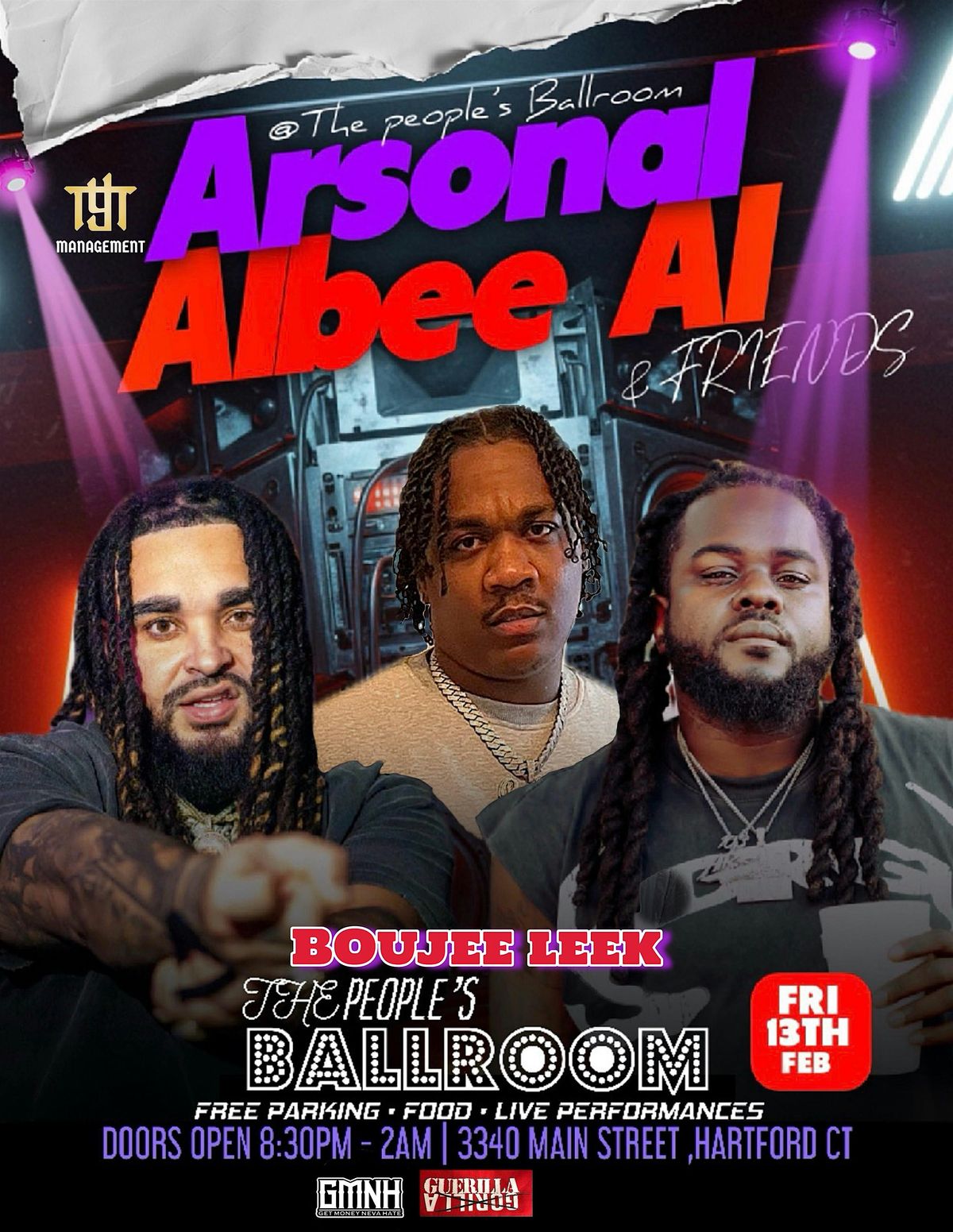 Live performances by Arsonal, Albee Al, Boujee Leek & friends—good music, drinks, vendor tables, and great vibes all night.