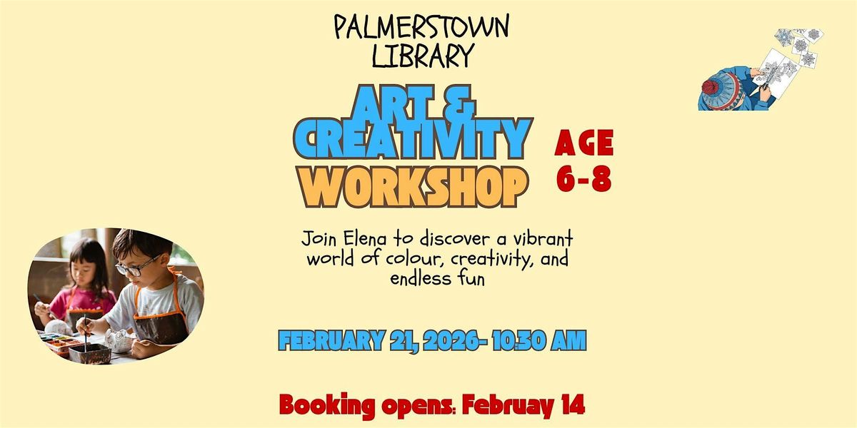 Welcome to the ART & CREATIVITY WORKSHOP happening at Palmerstown Library on February 21, 2026 at 10:30 AM. Join us for a fun and interactive session where you can unleash your artistic creativity. A perfect introduction to creative art for 6-8 year olds. See you there!