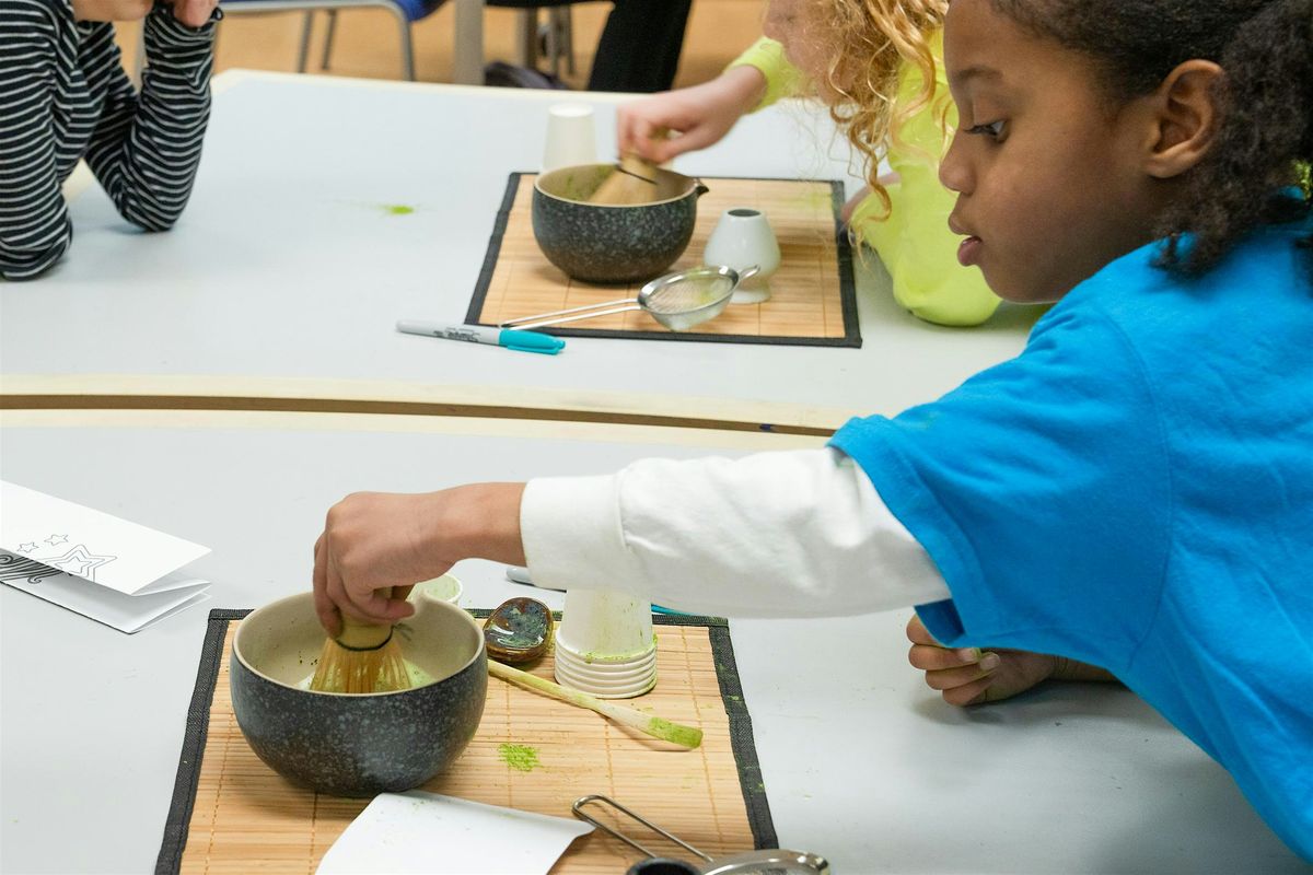 In this hands‑on workshop, kids ages 3–8 and their caregivers explore Japanese tea traditions, make decaf matcha, and learn how we take care of tea utensils. First, families take a guided tour of . Then art conservators show how we treat tea bowls used in gatherings and compare them to the ones we display. Kids then create a decorative tea bowl to take home.