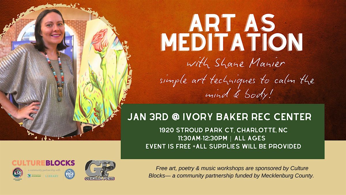 Join us for a chill, in-person Art as Meditation Workshop! It’s all about slowing down, getting creative, and finding your inner calm through art. No art skills needed—just bring yourself and a sense of curiosity. We’ll guide you through simple, relaxing projects that help you focus and unwind. Perfect way to escape the daily hustle and tap into some peaceful vibes. Can’t wait to see you there and create some mindful masterpieces together! All ages welcome and all supplies will be provided.