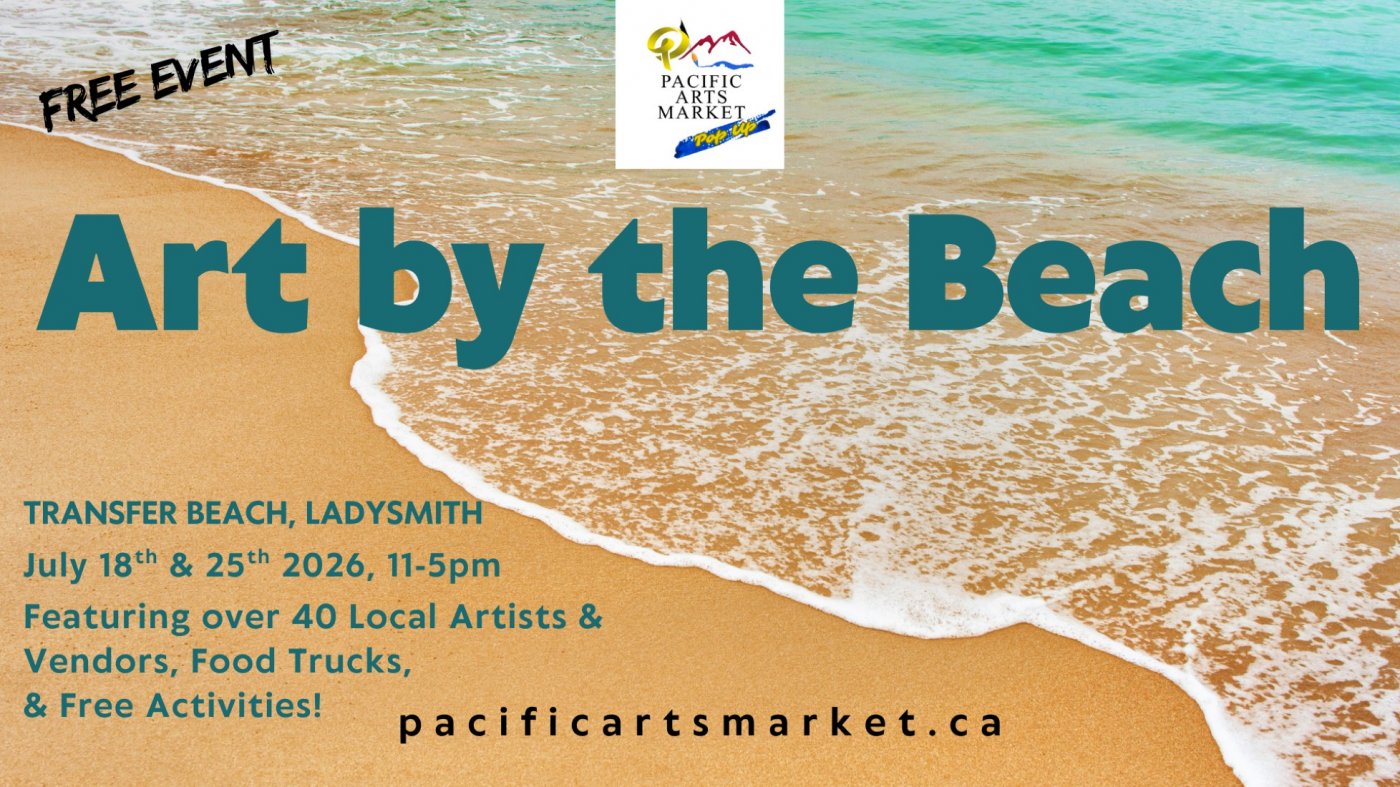 Mark your calendars for July 18th and 25th and join us at Transfer Beach for Art by the Beach. Whether you’re an art aficionado, a family looking for a fun outing or someone simply seeking to enjoy the coastal charm of Ladysmith this event promises something for everyone. Come and be inspired by the creativity on display and make lasting memories by the beach.