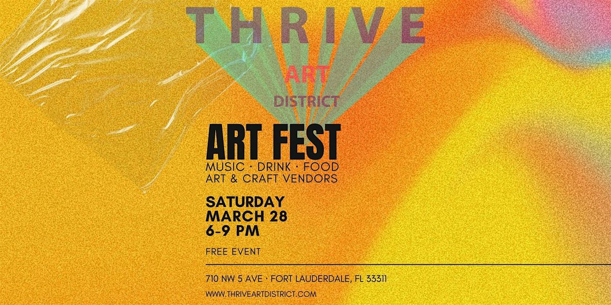Get ready for an awesome evening at the Art Fest happening at Thrive Art District! Dive into a vibrant world of creativity with amazing local artists, live demonstrations, and cool interactive exhibits. Whether you're an art lover or just looking for a fun outing, this fest is the place to be. Bring your family and friends, explore unique pieces, and soak up the inspiring vibes all around. See you there!