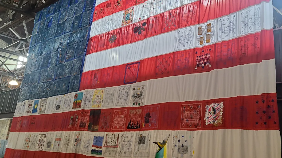In a local ABC news story, Santé Johnson explains, "I'm a hand-embroiderer for presidential flags, but I also do community workshops in Philadelphia." The photo above shows the (literally) big project of hers that you'll get to see in person ("in flag"?) at the event. You'll also hear the project's concept designer, Hayato Matsushita, talk about his contribution, (as well as his own work, which focuses on the mathematical and symbolic elements found in historical flags and maps), along with fellow artists Krista Dedrick-Lai, Andy Ita, and Alex Spalding (the last of whom has not yet confirmed).